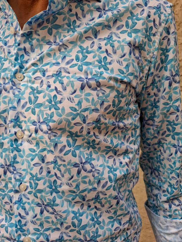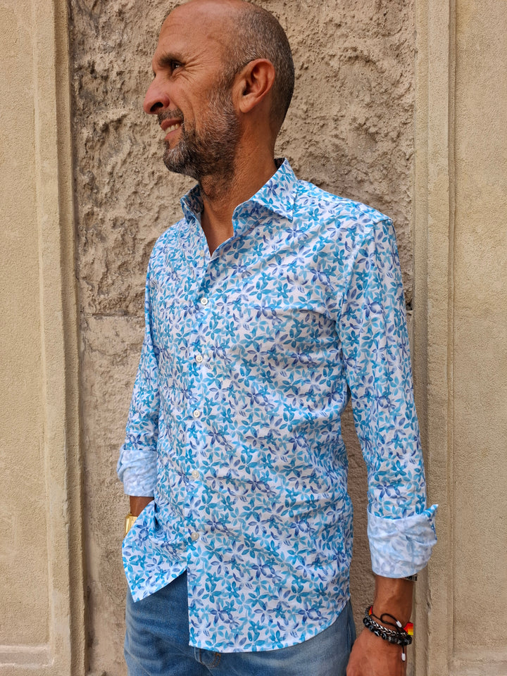 Camicia con collo alla francese, realizzata in fantasia floreale