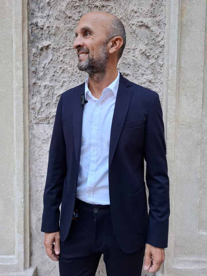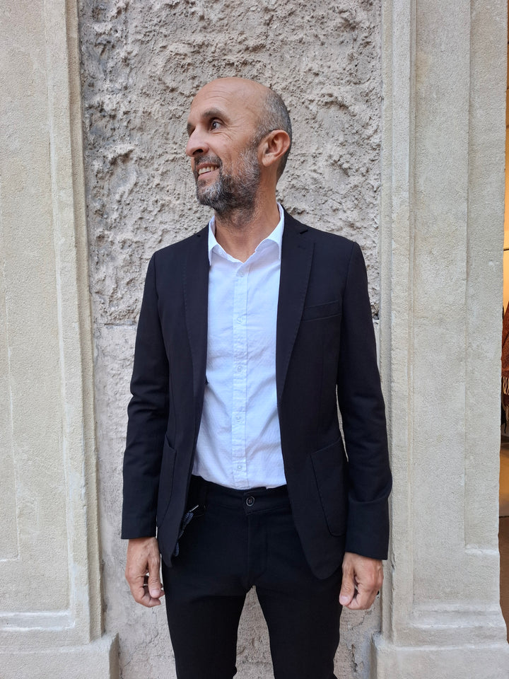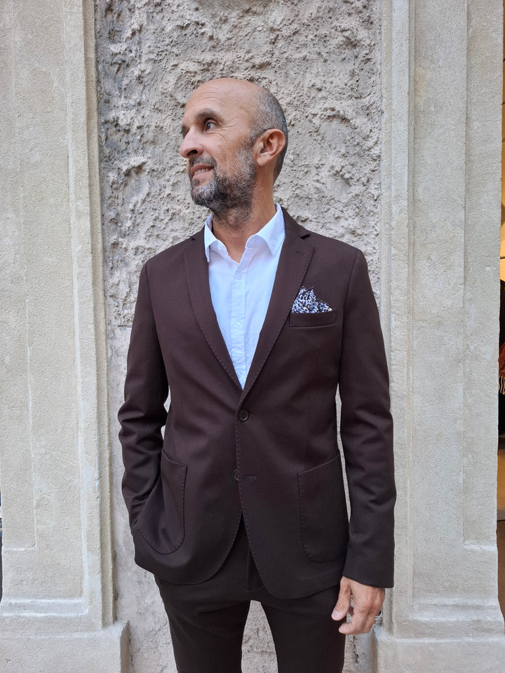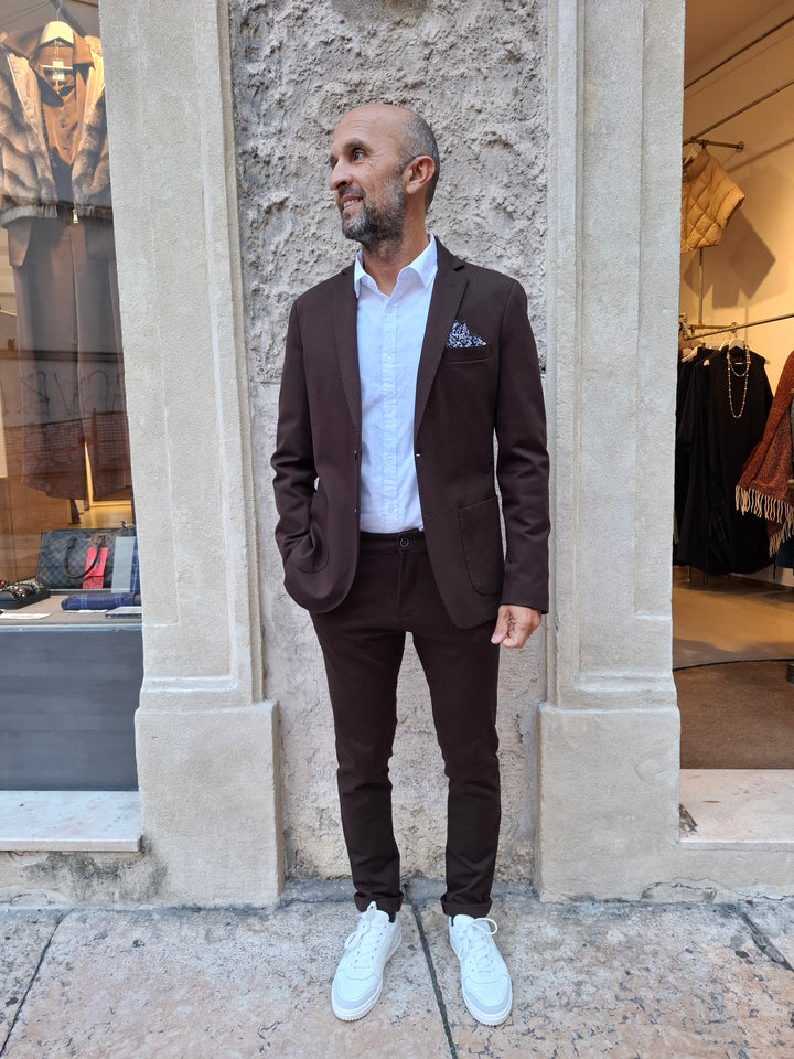 Giacca realizzata in tessuto elasticizzato con chiusura a 2 bottoni