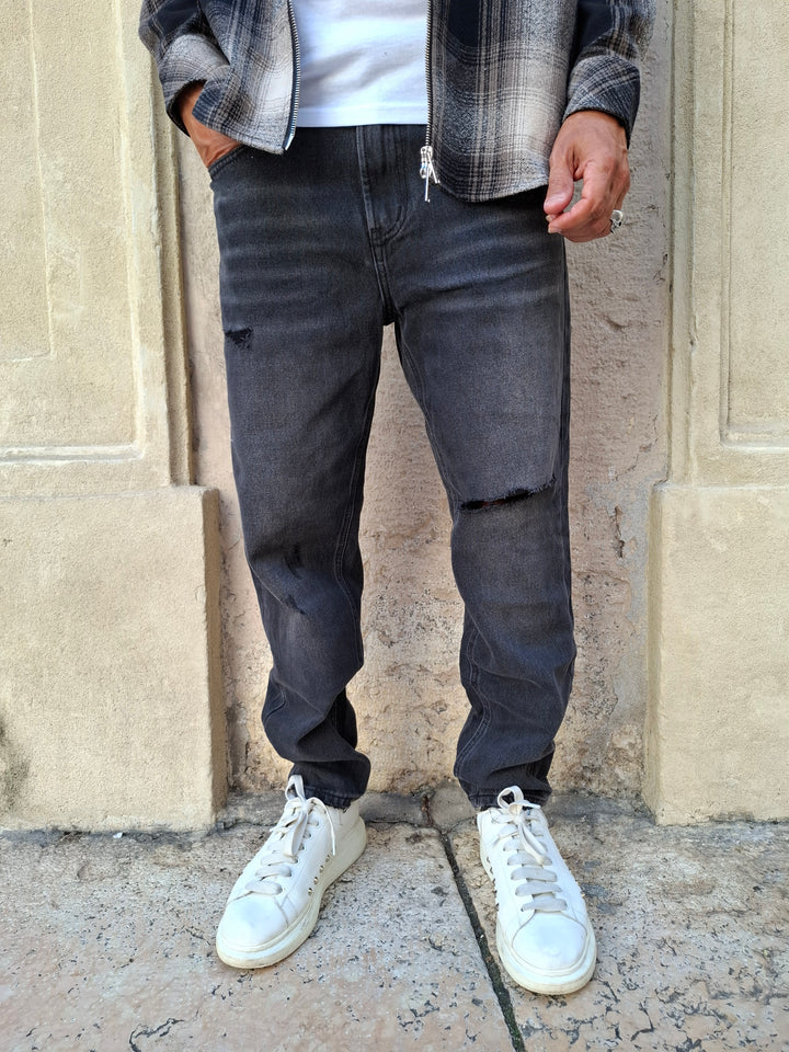 Jeans con strappo sul ginocchio e rotture varie