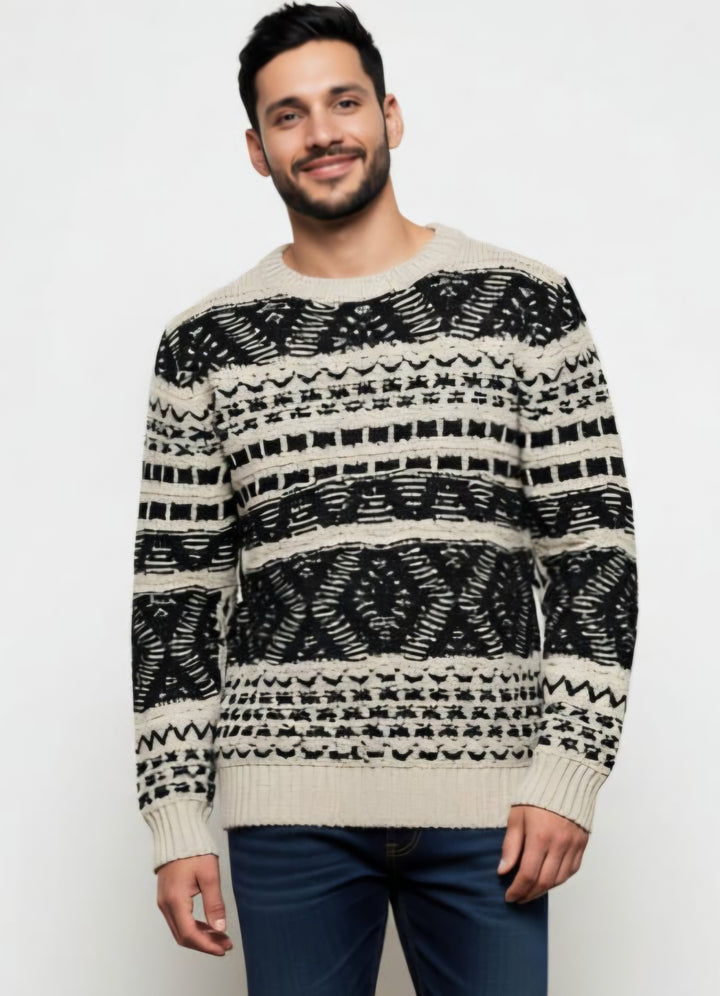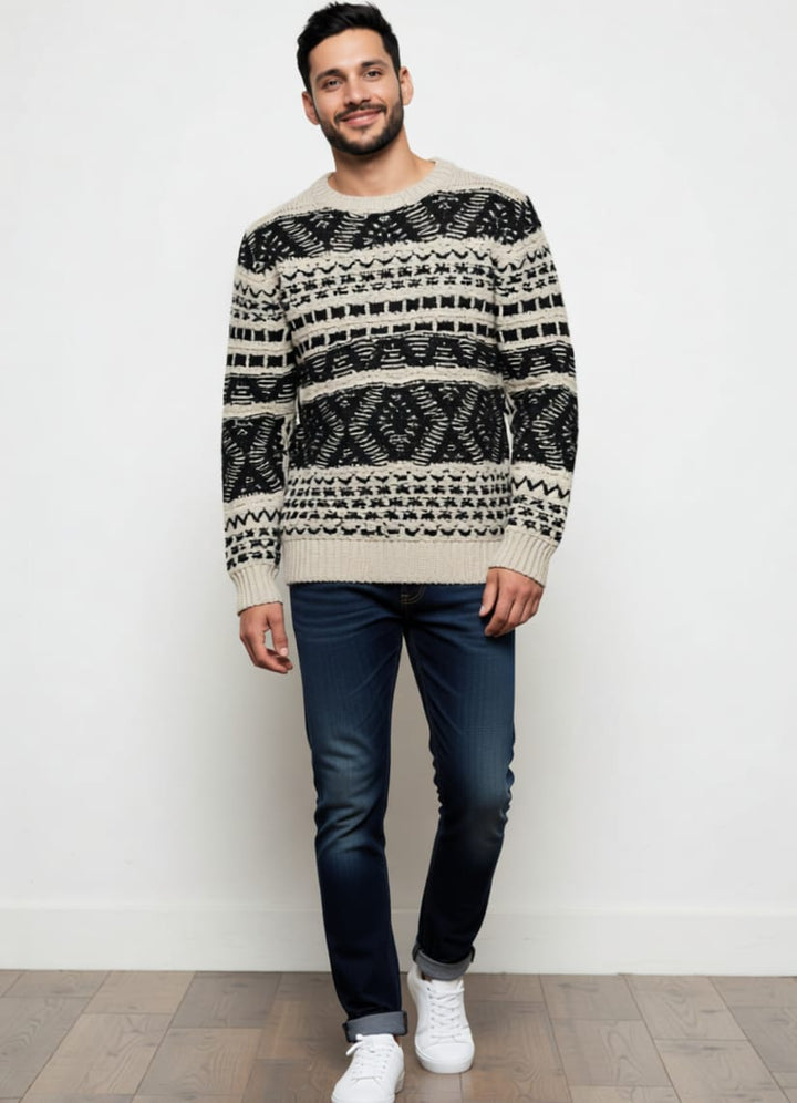 Maglione girocollo con fantasia geometrica, disponibile come da foto