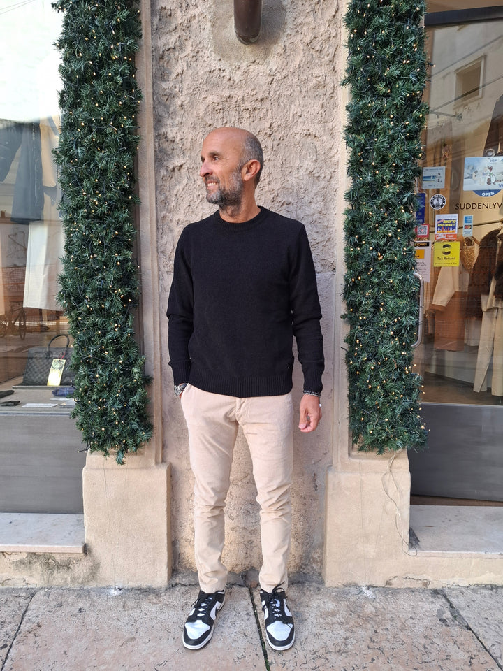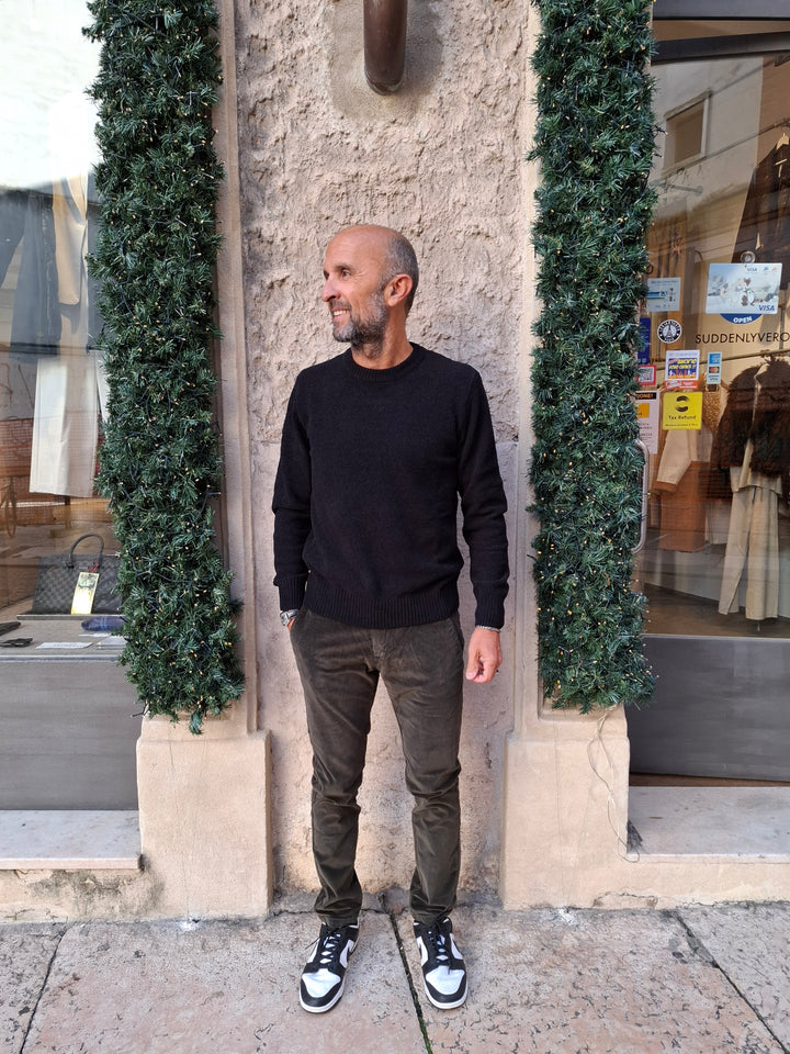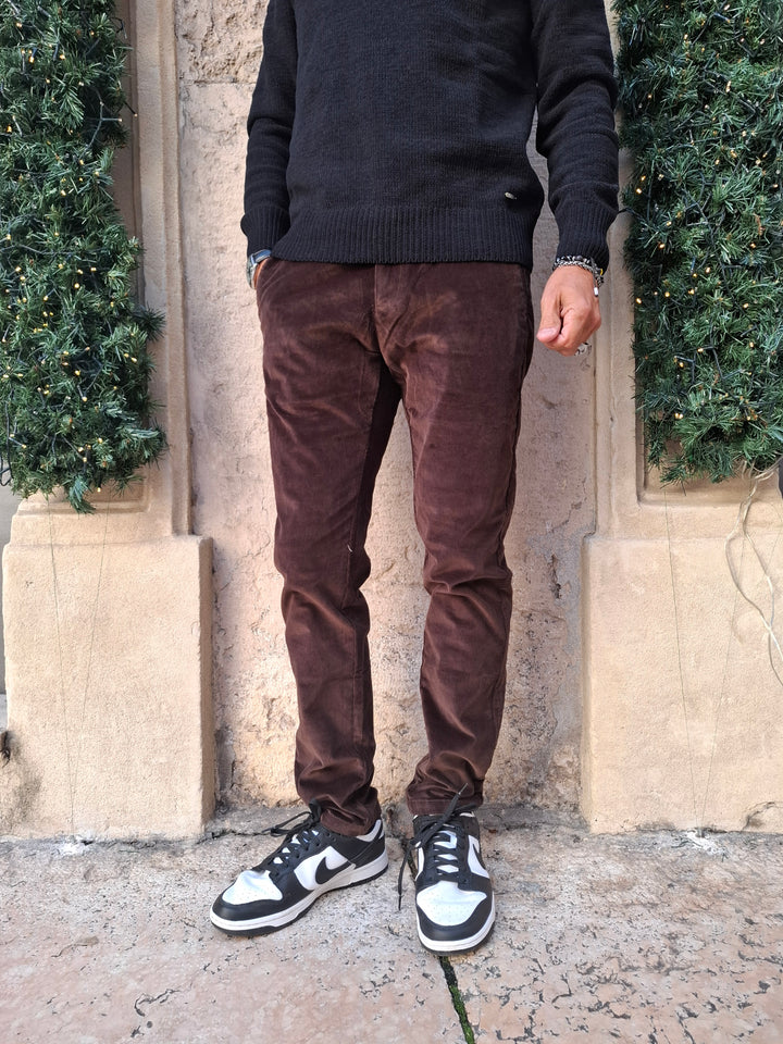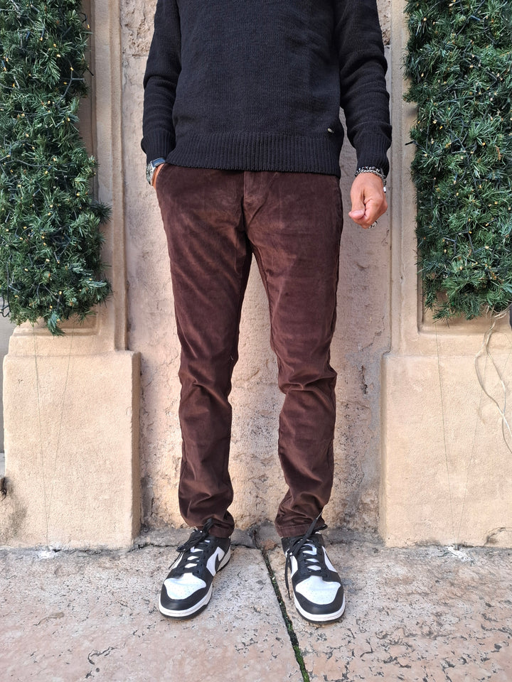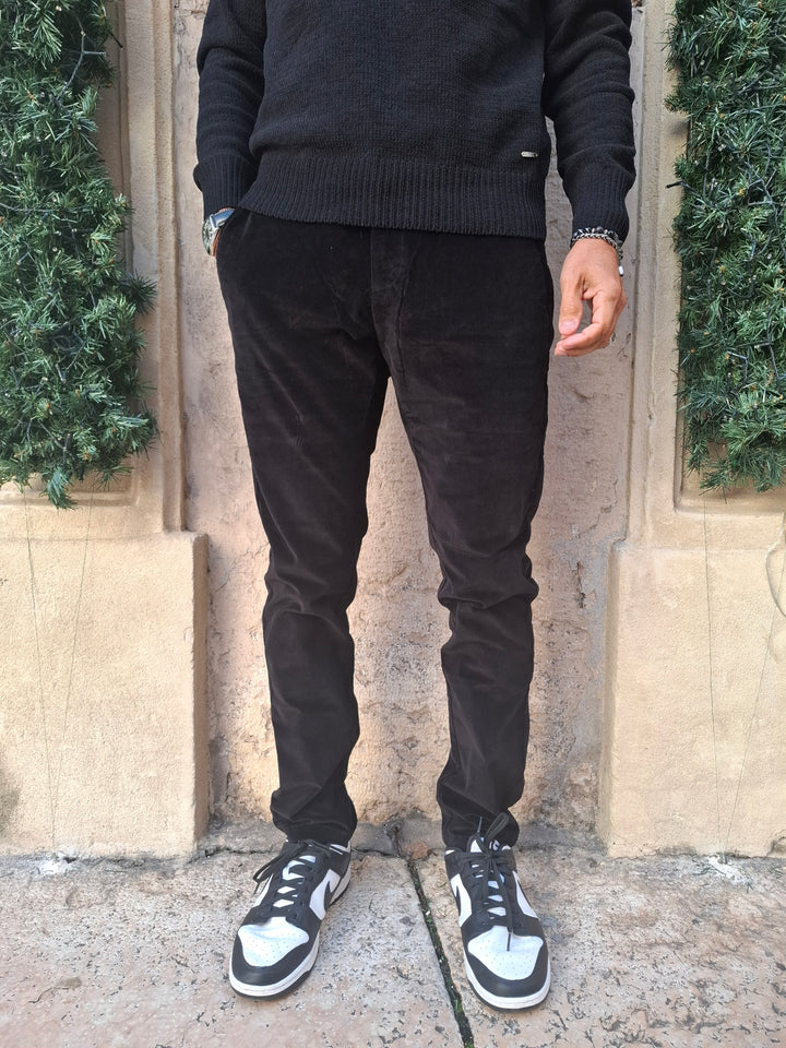 Pantalone a costine in velluto elasticizzato, vestibilità regular.